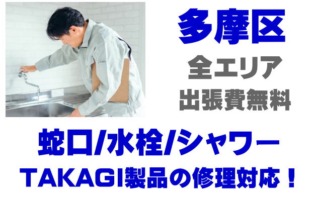 多摩区で水栓メーカーTAKAGIの修理業者をお探しなら当社までお気軽にお問い合わせください。蛇口の水漏れ、シャワーの故障などタカギ製に関するトラブルなら何でもご相談ください。